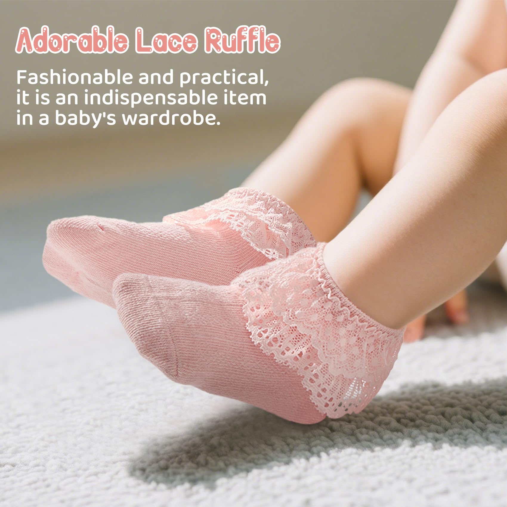 - Adorable Lace Ruffle Design: Featuring delicate lace trim around the ankle, these toddler ruffle socks add a charming touch to any outfit—perfect for everyday wear or special occasions, such as dresses, playwear, shopping, photoshoots, birthday or New Year, etc.
