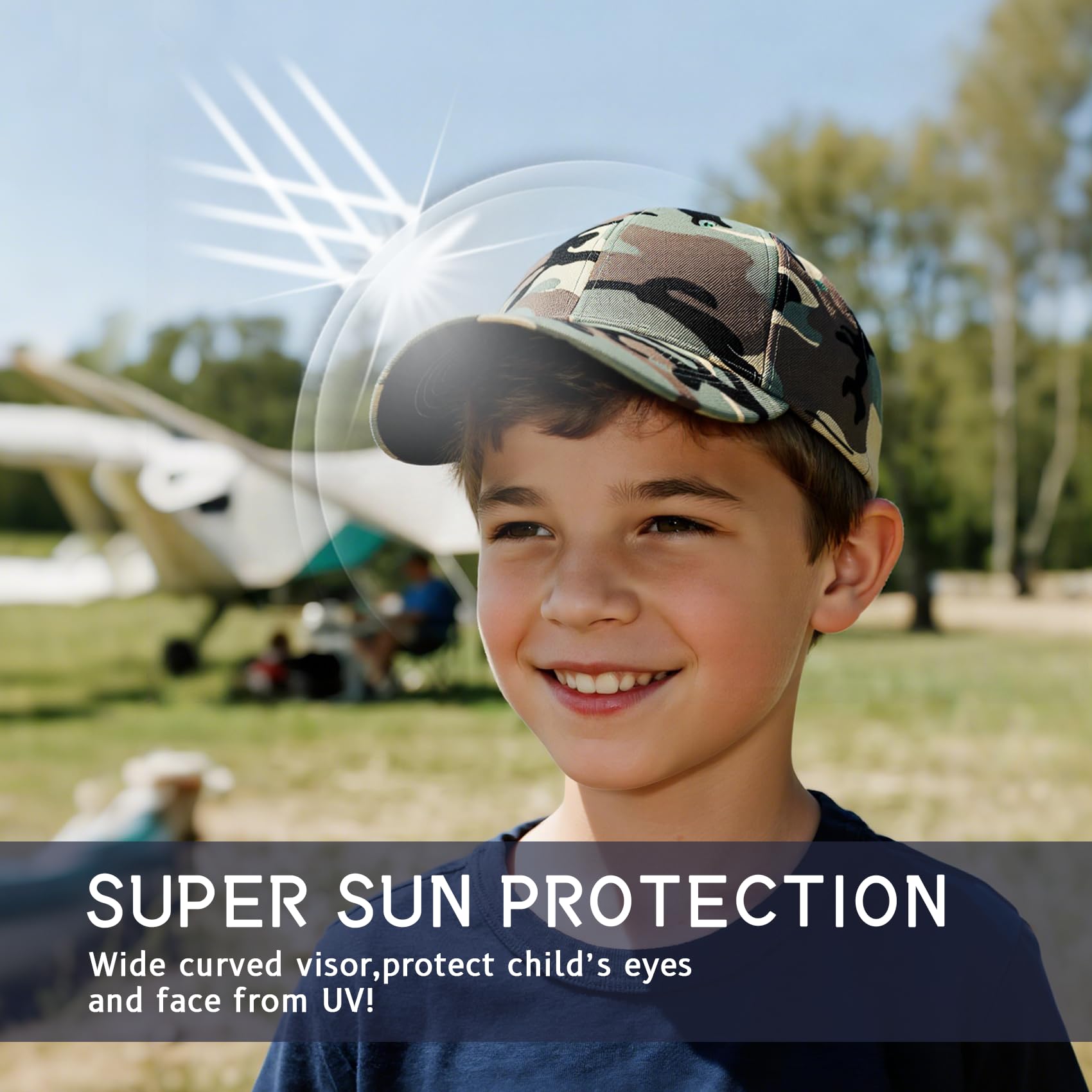 - Features: Protect your children's eyes and skin. Kids like to play outdoors, our hat can protect their eyes from the sunshine and ultraviolet ray